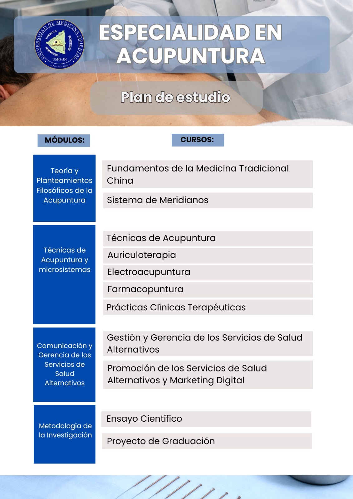 - Aplica adecuadamente y con presición la técnica de acupuntura para el tratamiento de patologías.